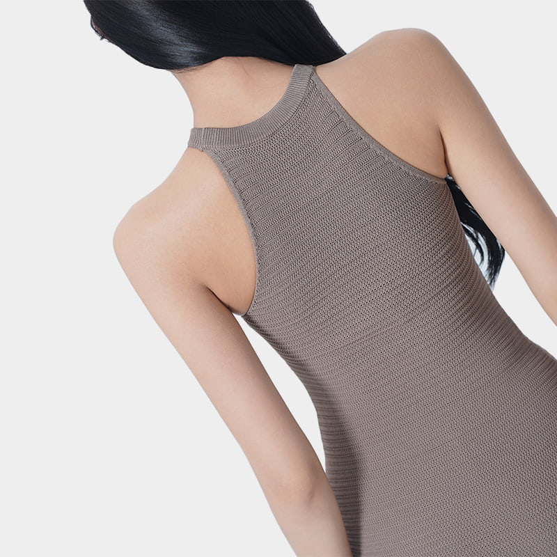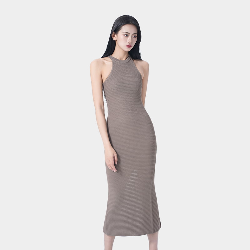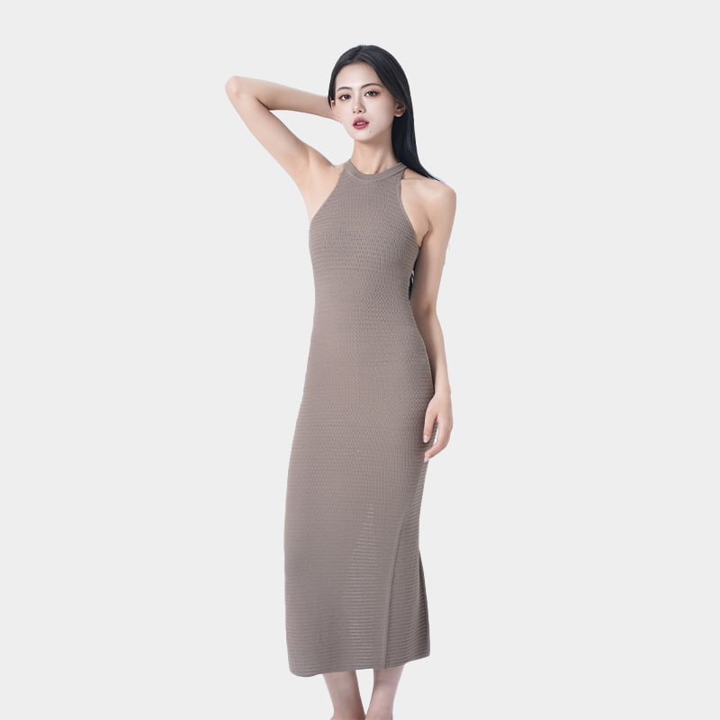 Este vestido maxi de estilo halter es una mezcla refinada de artesanía tradicional y estética moderna. Con detalles impecables y una experiencia de uso excepcional, redefine la elegancia y el encanto femeninos. Diseñado con una silueta que abraza el cuerpo, se ajusta a una segunda piel, acentuando curvas naturales. El patrón de tejido hueco es lo más destacado de esta pieza, con motivos de corte intrincados y delicados que crean un rico efecto texturizado, agregando una profundidad y carácter únicos a la tela. Adecuado para cualquier ocasión, simplemente combínelo con pisos y un pequeño bolso para destacar sin esfuerzo.