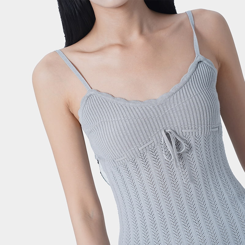 Hecho a partir de tela suave y transpirable, delicada para el tacto y la piel, lo que hace que sea fácil manejar el calor del verano. El color azul de la moderna smog con un tono de baja saturación trae una sensación de elegancia. El clásico diseño de deslizamiento resalta el hombro y el escote, creando sin esfuerzo un aspecto de moda y elegante.